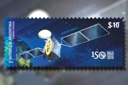Correo Argentino lanzó hoy un sello postal con la imagen del satélite ARSAT-1 en el espacio para celebrar los 150 años del primer Convenio Telegráfico Internacional y la creación de la Unión Internacional de Telecomunicaciones (UIT).